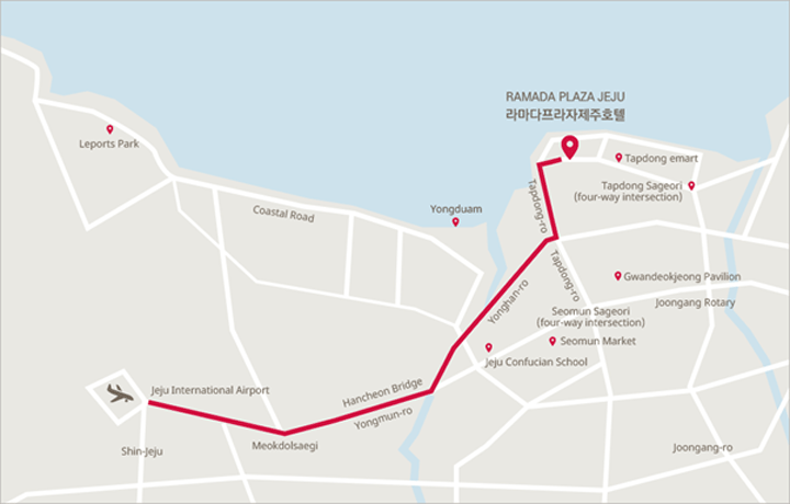 - · From Jeju International Airport to Ramada Plaza Jeju